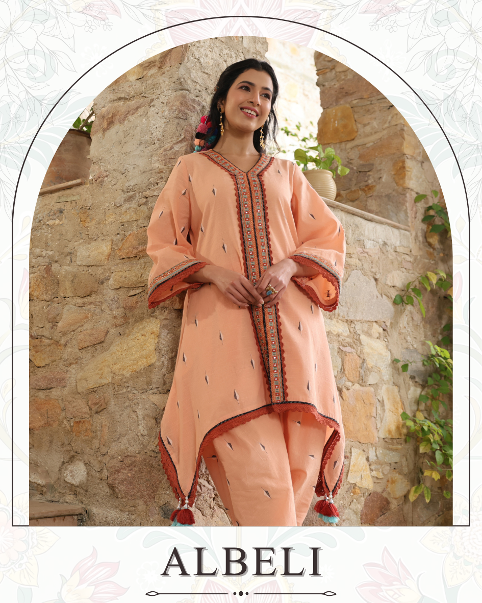 Beige Cotton Printed Co-Ord Set