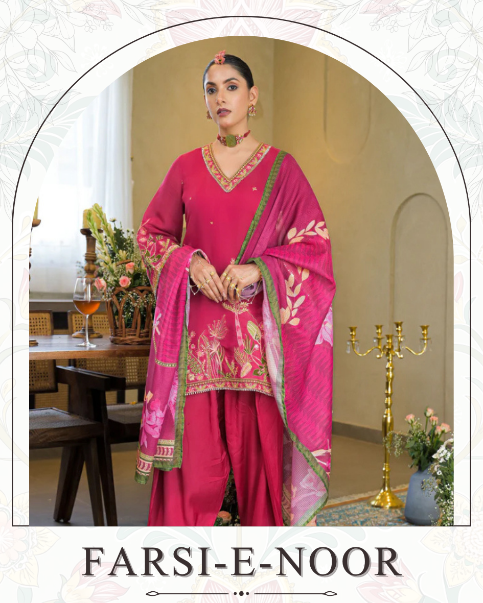 Pink Floral Chinon Handwork Anarkali Suit