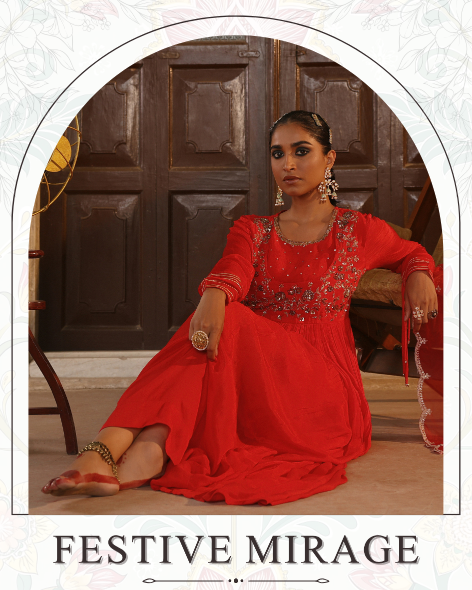 Red Cotton Gotapatti Gown Set