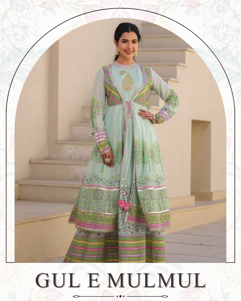 Turquoise Mul Chanderi Embroidered Shrug Set
